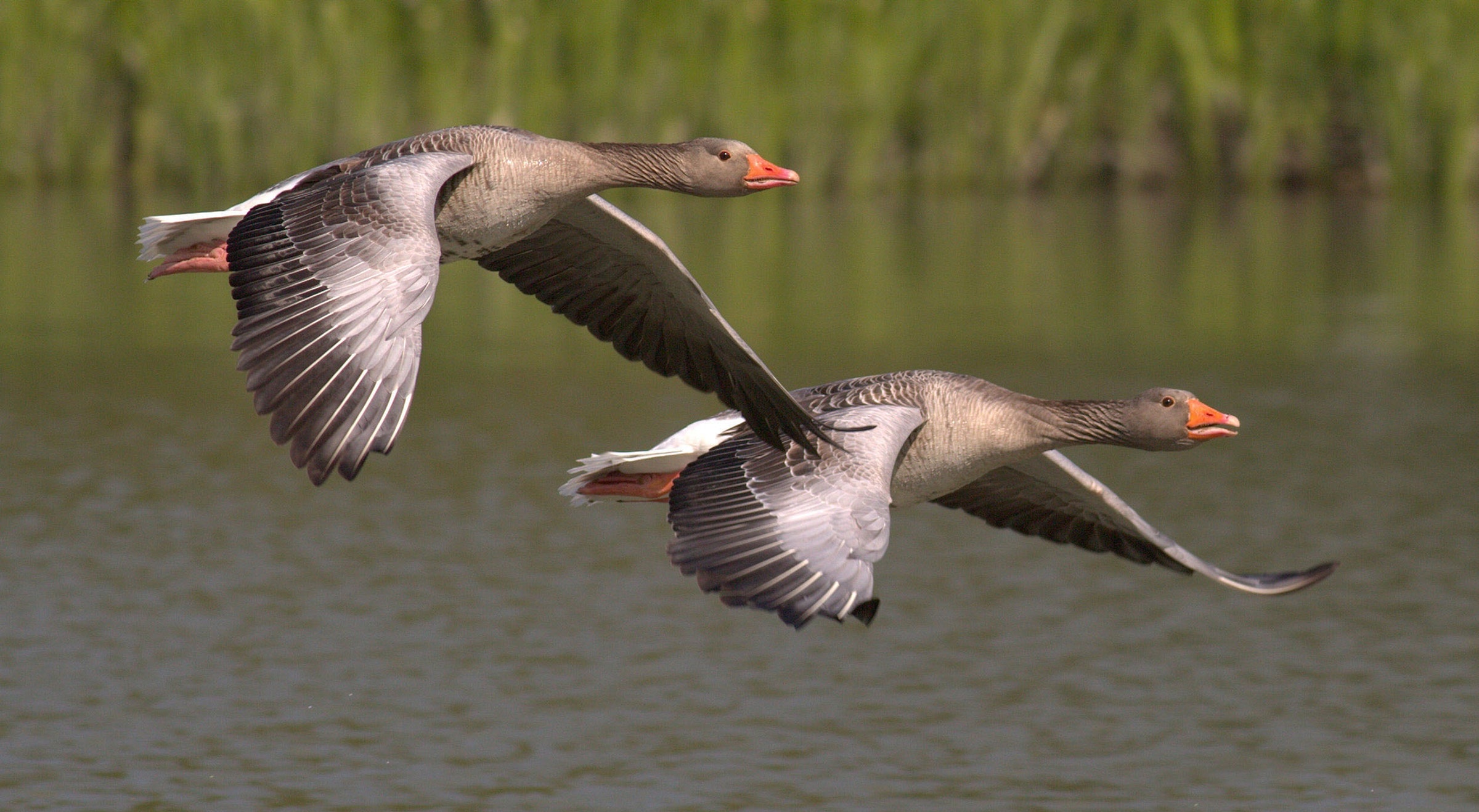 De grauwe gans is in Nederland de meest voorkomende ganzensoort. Tijdens de vogeltrek vliegen grauwe ganzen in een V-vorm, waarbij ze het bekende schor klinkende gak-gak roepen.